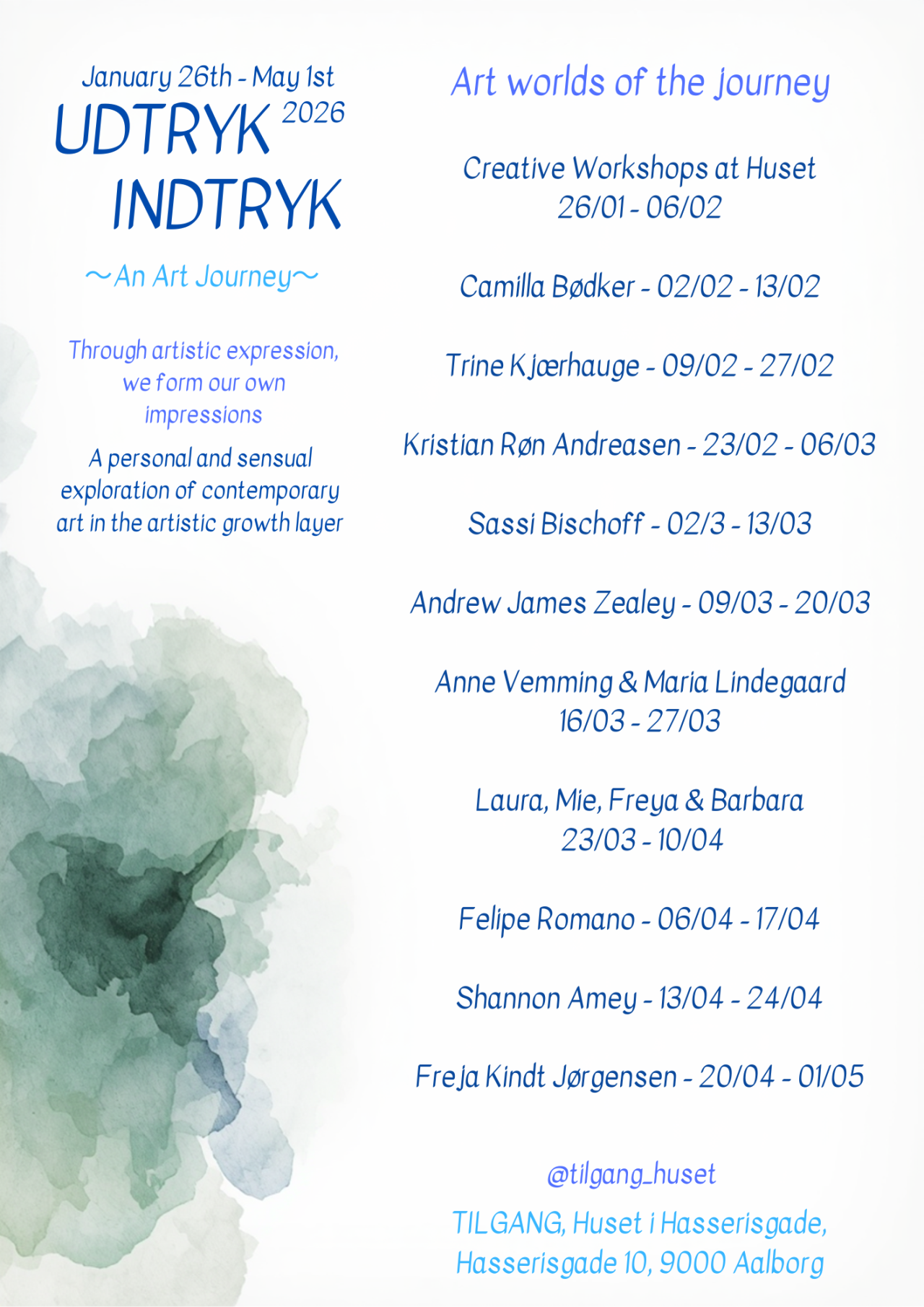 Og kom med på vores næste kunstrejse gennem det spirende vækstlag af nordjysk samtidskunst! Her kan du opleve 10 inspirerende udstillinger! Vi skal dykke ned i forskellige kreative, legende processer hos kunstnere med deres helt eget, unikke udtryk.