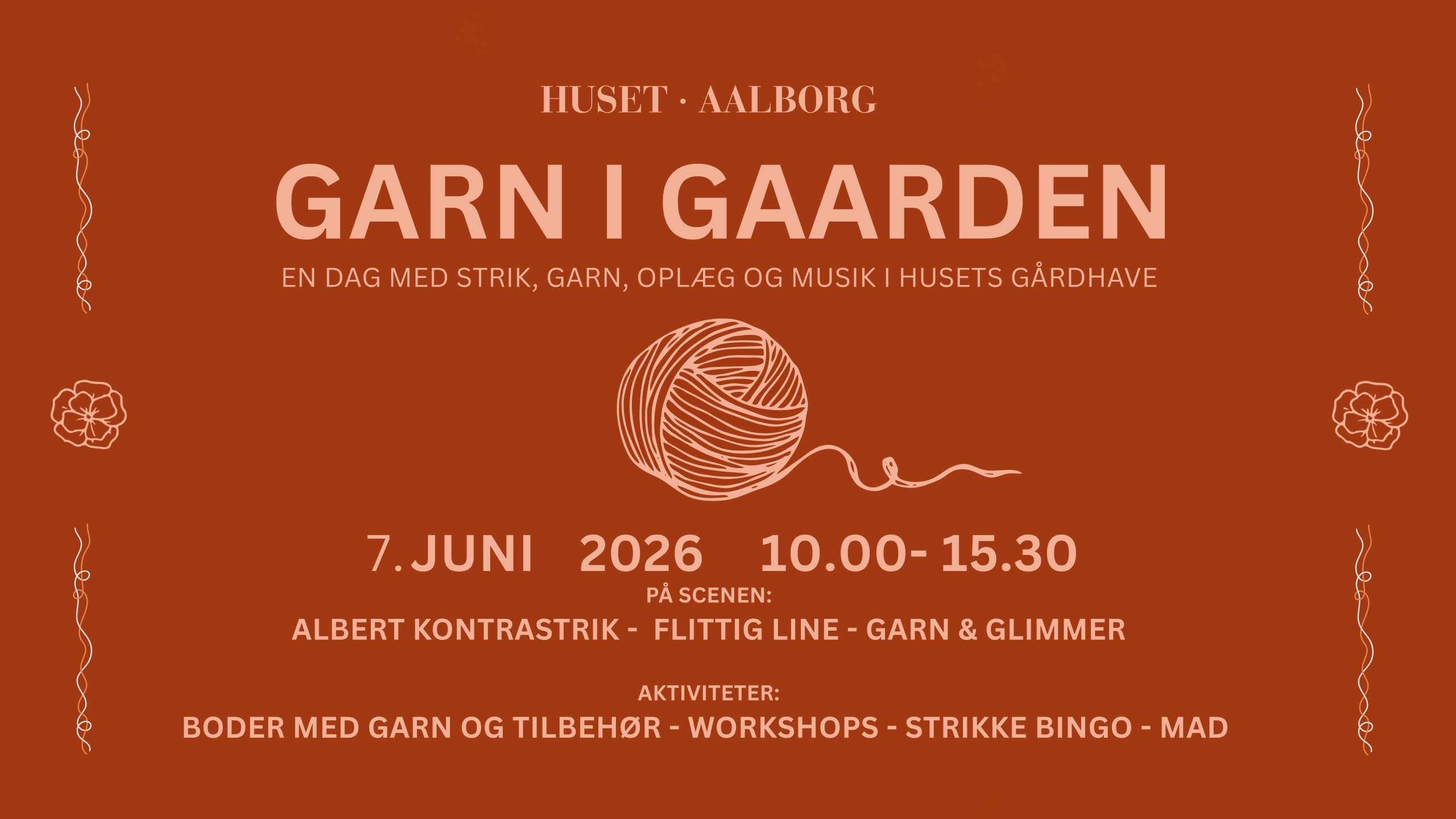Oplev lokale garnbrands, find nye materialer og få inspiration til dit næste projekt. Dagen byder også på kreative workshops og små aktiviteter undervejs.